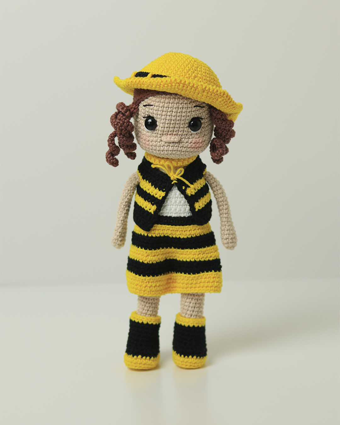 • Handmade crochet plush figure • Amigurumi Yarn (Círculo) – 100% mercerized cotton (OEKO-TEX® certified) • Hypoallergenic siliconized fiberfill • Cotton embroidery threads, felt, and sewing cotton • Safety eyes • Spot clean only • Each piece is unique due to its handmade nature