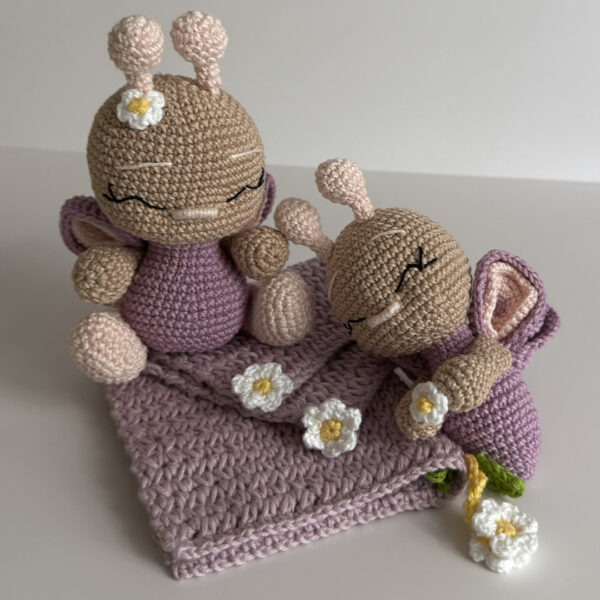 • Bee figure height: approximately 3.5 inches (9 cm) • Fabric companion size: approximately 10 × 10 inches (25 × 25 cm) • Lightweight and flexible structure • Designed for decorative and keepsake use • Due to the handmade nature, slight variations may occur