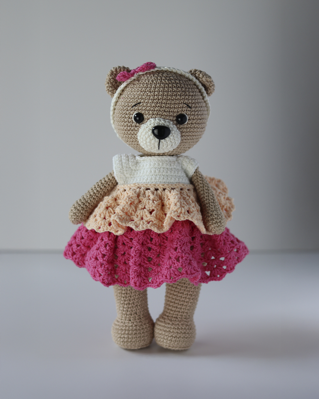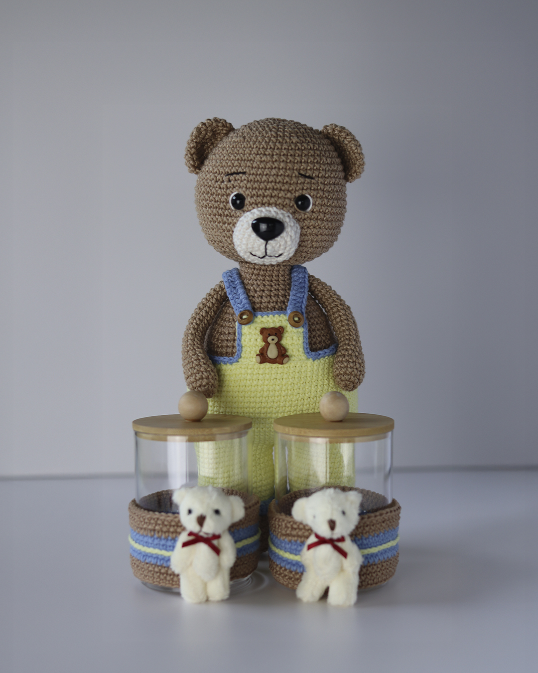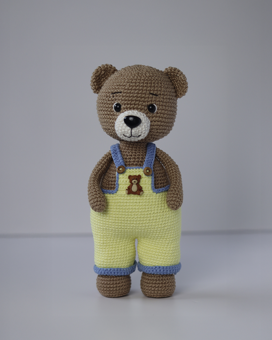 • Handmade crochet plush bear • Amigurumi Yarn (CÃrculo) – 100% mercerized cotton (OEKO-TEX® certified) • Hypoallergenic siliconized fiberfill • Cotton embroidery threads • Safety eyes • Spot clean only • Each piece is unique due to its handmade nature